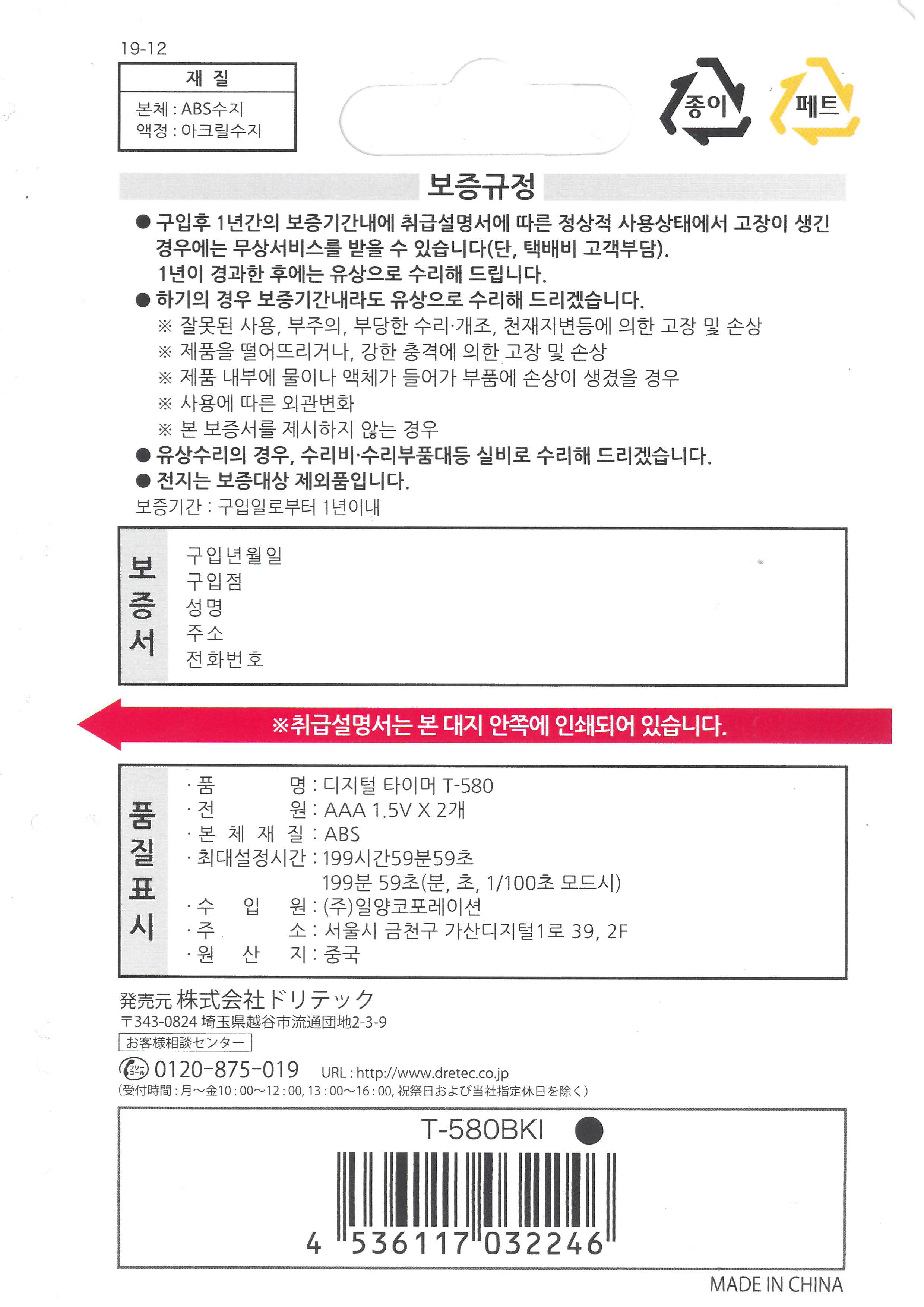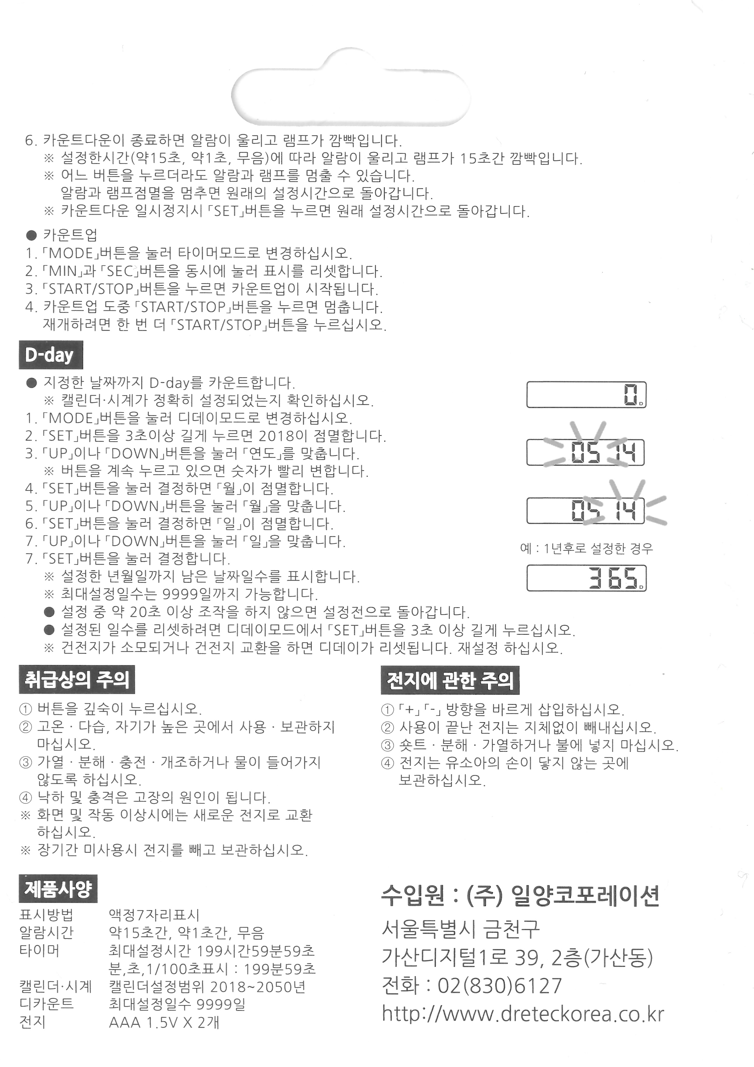 #Dretec 스톱워치 사용설명서