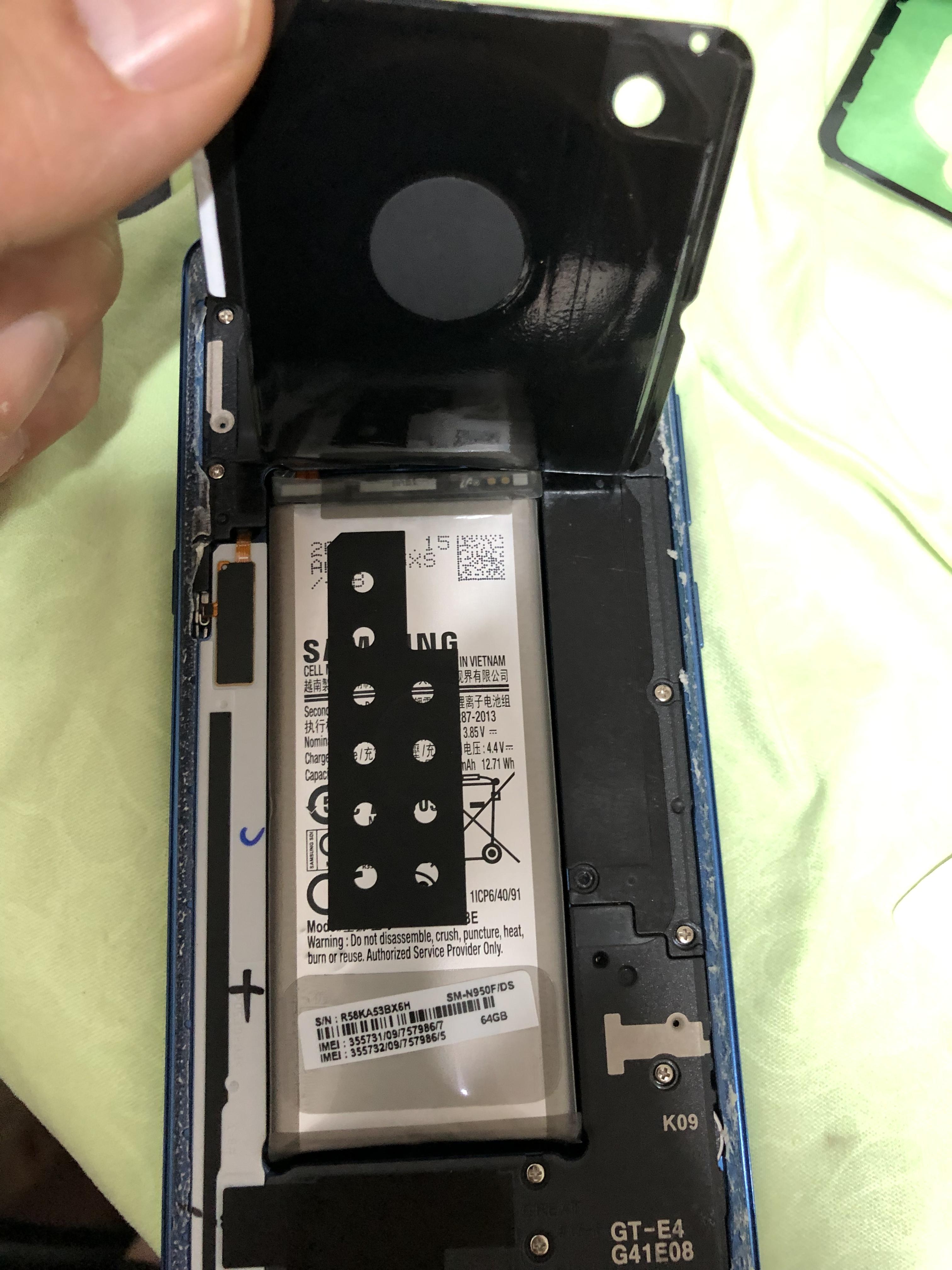 노트8에 스웰링 현상으로 뒷판이 이렇게 튀어오르면 조금씩 벌어지기 시작했다 ... 이상태로 2주 정도 사용